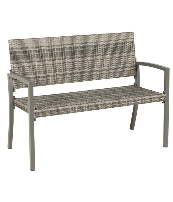 Stellen Sie sich vor, wie Sie sich am Nachmittag mit einem duftenden Kaffee in der Hand auf Ihrer neuen Acamp Gartenbank Dijon im Garten niederlassen. Sie lehnen sich zurück, blicken in den Garten und genießen die laue Luft. Es sitzt sich so herrlich bequem dank der attraktiv geflochtenen Sitz- und Rückenfläche aus Polyrattan. Dabei ruht einer Ihrer Arme auf der Armlehne und in der anderen Hand halten Sie Ihre Tasse, von der Sie ab und an einen Schluck nehmen. Ganz schnell lassen Sie dann den Alltag hinter sich. Entspannung stellt sich ein und Sie genießen Ihre grüne Oase. Die Acamp Gartenbank Dijon zeichnet sich durch ein geradliniges, modernes Design aus. Damit und mit der natürlichen Maserung der Polyrattan-Oberfläche passt sie überall hin. Stellen Sie Ihre Acamp Gartenbank Dijon also auf, wo es sich bei Ihnen im Garten anbietet – auf der Terrasse, vor der Hauswand oder in der lauschigen Ecke, die so gemütlich von üppig grünen Gehölzen umrahmt wird!