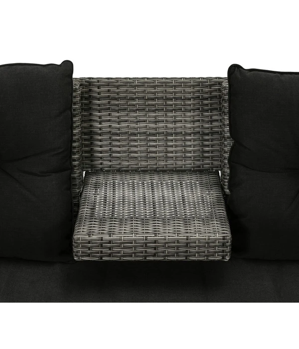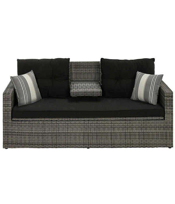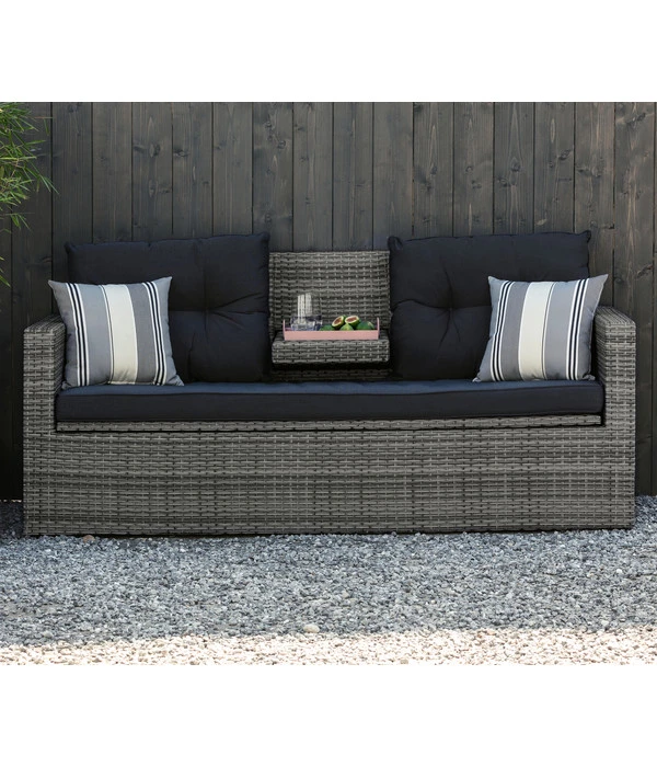 Die Dehner Flecht-Truhenbank ‘Föhr‘ wird Sie mit einem weiteren, nicht alltäglichen Ausstattungsdetail verwöhnen. Sitzen Sie an einem schönen Sommertag gemütlich auf Ihrem neuen Loungesofa und haben plötzlich Lust auf ein kaltes Getränk, klappen Sie einfach aus der Mitte der Rückenlehne eine kleine Ablagefläche heraus, auf der Sie Getränke oder Snacks abstellen können.