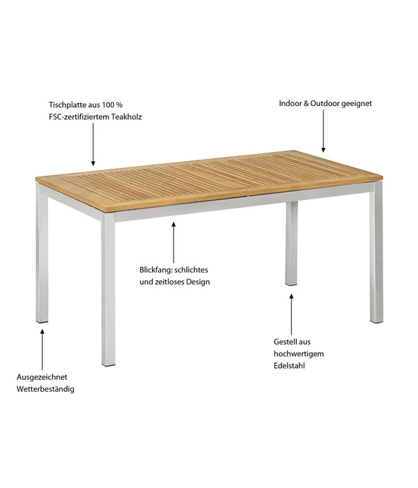 Tischplatte Teak, Gestell Edelstahl, 152 x 90 x 75 cm