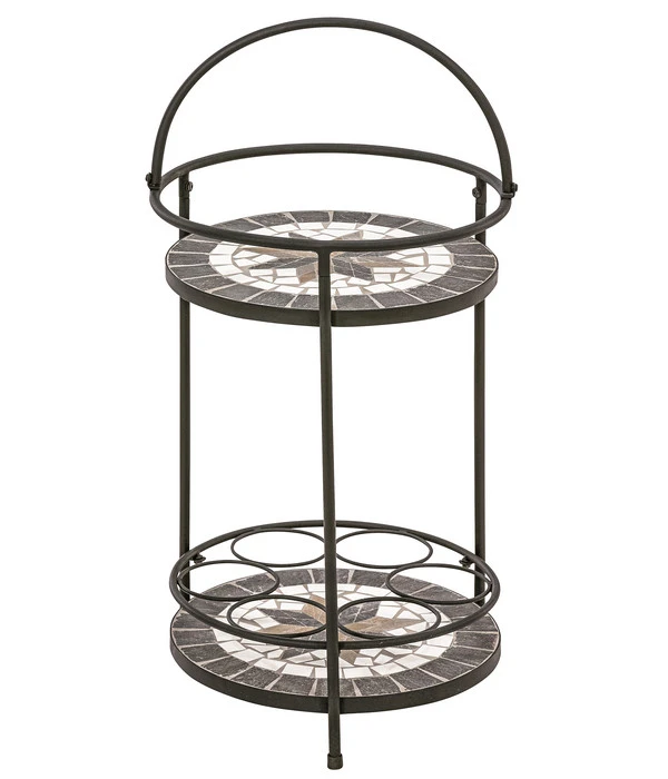 Das Gestell des Mosaikbeistelltischs ‚Diana‘ der Marke Dehner ist aus robustem und pulverbeschichtetem Eisen gefertigt. Daher eignet sich das Kleinmöbel sowohl für den Außen- als auch Innenbereich als perfekter Hingucker. Mithilfe des Henkels lässt sich der Tisch auch kinderleicht umsetzen. Am besten Sie bestellen sich jetzt gleich Ihren Mosaikbeistelltisch ‚Diana‘ aus der Kollektion von Dehner und verleihen Ihrem Zuhause eine besondere Note!