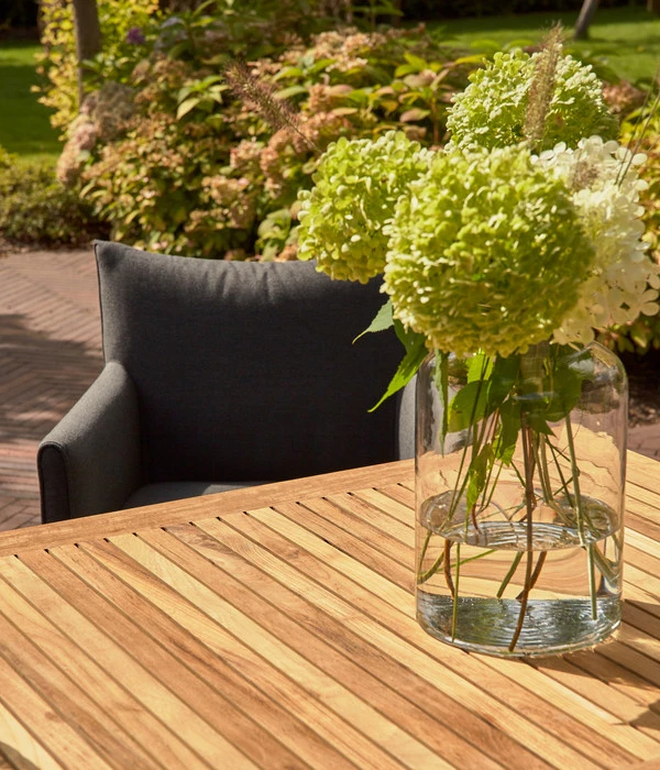 Teakholz, wie es für die 16 mm starke Tischplatte beim Siena Garden Gartentisch Geneva verwendet wurde, zählt zu den bekanntesten und wertvollsten Hölzern Asiens. Es zeichnet sich durch seine besondere Härte aus und besticht mit seiner charakteristischen Maserung, die jedem Möbelstück eine individuelle Note verleiht. Es eignet sich ideal für den Außeneinsatz und kommt bei uns selbstverständlich aus nachhaltiger Forstwirtschaft, bei der auf den Erhalt der Artenvielfalt und der Ökosysteme geachtet wird – das bestätigt Ihnen das FSC®-Zertifikat.
