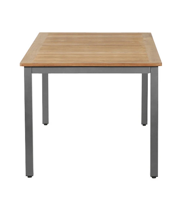 Wenn ein Möbelstück aus interessanten, hochwertigen Materialien hergestellt wurde, braucht es nicht viele Verzierungen, finden Sie. Da können wir Ihnen nur beipflichten und Ihnen den Siena Garden Gartentisch Geneva vorstellen. Denn dieser Terrassentisch ist von bestechender Schlichtheit. Auf seinem geradlinigen Aluminiumgestell ruht eine Tischplatte aus Teakholz, die in typischer Lattenstruktur gefertigt wurde. Damit wirbt der schöne Tisch um Ihre Gunst und macht sich so zum harmonischen Kombipartner, der die unterschiedlichsten Möbelstile ergänzen kann. Er lenkt den Blick aber auch gleichzeitig auf die wirklich wichtigen Aspekte seiner spannenden Materialkombination. Denn die Holztischplatte kann so das zur Wirkung bringen, was jeden einzelnen dieser Tische zu einem einzigartigen Stück macht: die charakterstarke Maserung des edlen Hartholzes, die naturgegeben bei jedem Tisch etwas anders ausfällt. Ein reizvolles Schmuckstück, das Ihnen mit einer Fläche von 90 x 160 cm viel Platz für Ihre Speisen, Getränke und die Dekoration bietet. Sichern Sie sich Ihren Siena Garden Gartentisch Geneva am besten gleich jetzt!
