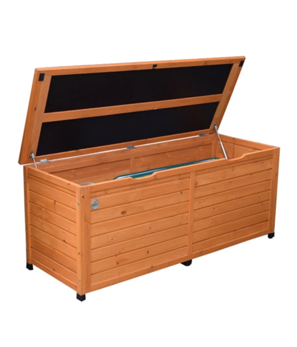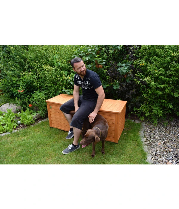 Wer sich im eigenen Garten restlos wohlfühlen möchte, überlässt bei Outdoor-Ausrüstung und Zubehör selbstverständlich nichts dem Zufall. Falls Sie Ihre wichtigsten Gegenstände im Außenbereich auch adäquat unterbringen möchten, dann sind Sie mit der Weka Balkon- und Terrassentruhe genau richtig bedient. Durch ihren beachtlichen Stauraum schafft Sie sofort Ordnung, auch außerhalb der eigenen vier Wände. Gleichzeitig bietet Ihnen das Zubehör im Inneren eine optimale Luftzirkulation, damit sich hier keinerlei überschüssige Feuchtigkeit ansammeln kann. Über die hochwertigen Gasdruck-Teleskop-Scharniere lässt sich die rundum holzschutzlasierte Truhe auf komfortable Art und Weise öffnen und schließen. Darüber hinaus verfügt die Weka Balkon- und Terrassentruhe auch noch über extra abgedichtete Fugen und Tropfleisten. Bitte beachten Sie, dass die Truhe nur für überdachte Balkone und Terrassen geeignet ist.
